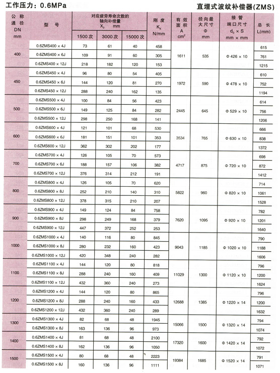 直埋式波紋補償器(ZMS型)參數2