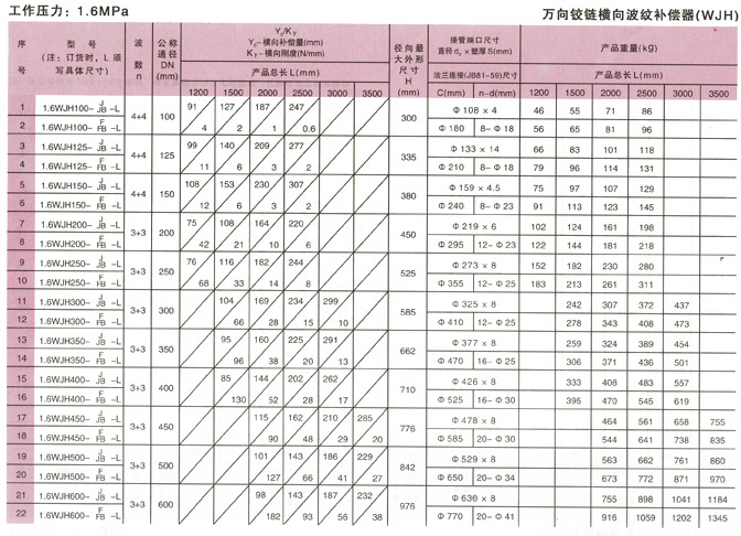 萬向鉸鏈橫向波紋補償器(WJH)產品參數5