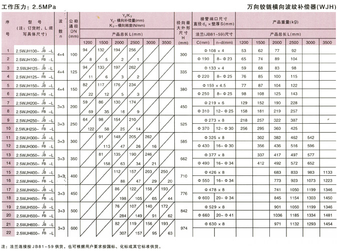 萬向鉸鏈橫向波紋補償器(WJH)產品參數6