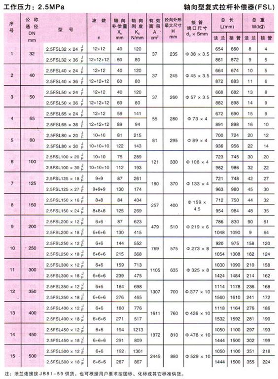 軸向型復式拉桿波紋補償器(FSL型)參數(shù)4