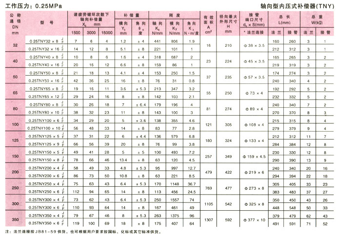 軸向型內(nèi)壓式波紋補(bǔ)償器(TNY)參數(shù)1